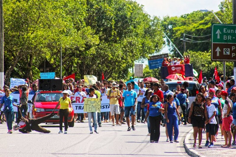 Manifestantes deslocaram em direção à linha férrea no bairro Dois de Julho, município de Alagoinhas, e policiais militares do 4º Batalhão de Polícia Militar (BPM) estão no local. Não houve bloqueio das vias e os veículos circulam normalmente na região. Com carro de som no Centro da cidade, representantes da Central Única dos Trabalhadores (CUT), os Sindicatos dos Rodoviários e dos Comerciários participam da manifestação, que é acompanhada por equipes do 4º Batalhão.