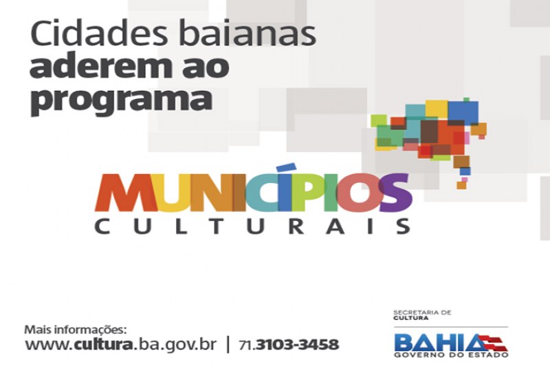 Todos os 279 Termos de Adesão de prefeituras baianas ao Programa Municípios Culturais já foram assinados e devidamente publicados no Diário Oficial do Estado. O trabalho vem sendo realizado pelo Governo da Bahia, através da Secretaria de Cultura da Bahia (SecultBa) e suas vinculadas, o Instituto do Patrimônio Artístico e Cultural (Ipac), Fundação Cultural do Estado da Bahia (Funceb), Fundação Pedro Calmon (FPC), Centro de Culturas Populares e Identitárias (CCPI).