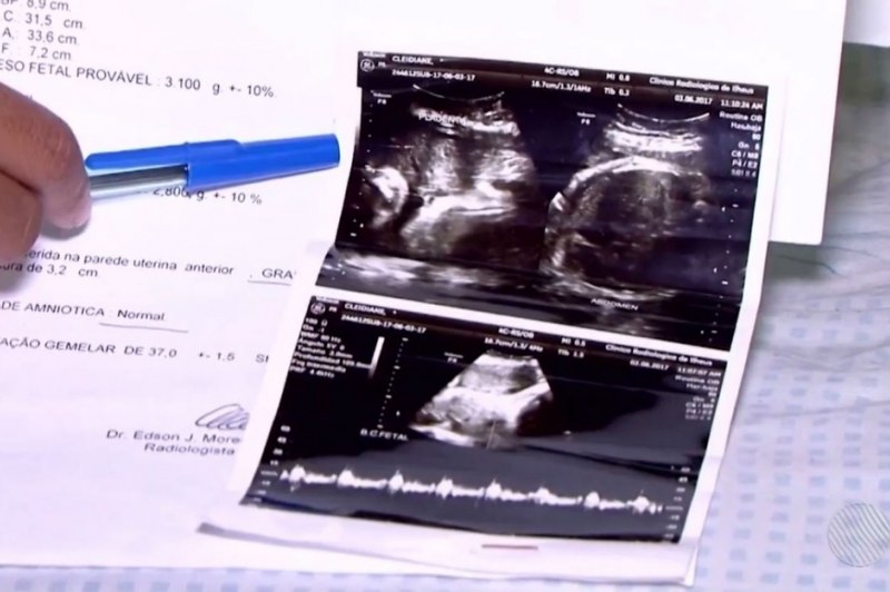 A dona de casa diz, no entanto, que a última ultrassonografia da gravidez dela foi feita no dia 3 de junho, quando ela estava com 37 semanas, e confirma que ela estava grávida de gêmeos e até descreve os dois fetos. A mulher também afirma que, antes do parto, ainda chegou a ser informada no hospital que os dois bebês estavam bem.