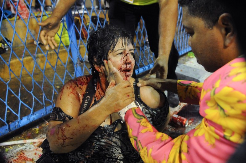 Últimas informações do Corpo de Bombeiros dão conta que oito pessoas ficaram feridas ao serem atingidas por carro alegórico no desfile da Paraíso Tuiuti, na noite deste domingo (26). Dentre os feridos há uma moça ainda não identificada que ficou presa às grades com fratura exposta em uma das pernas.