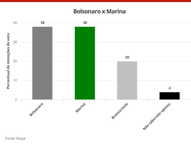 Bolsonaro 38% x 38% Marina