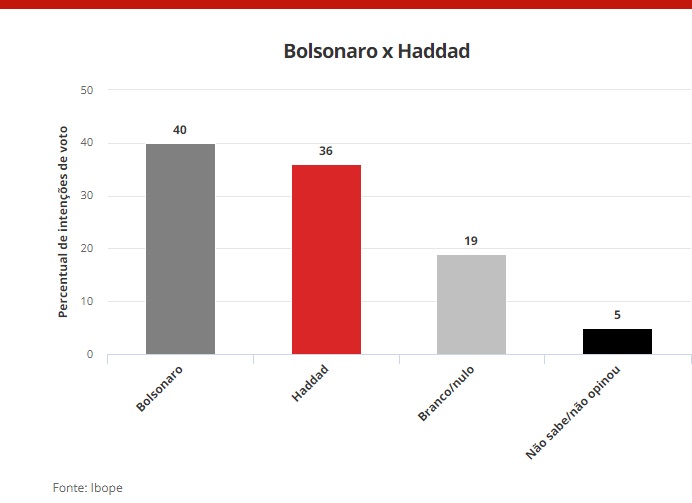 Haddad 36% x 40% Bolsonaro