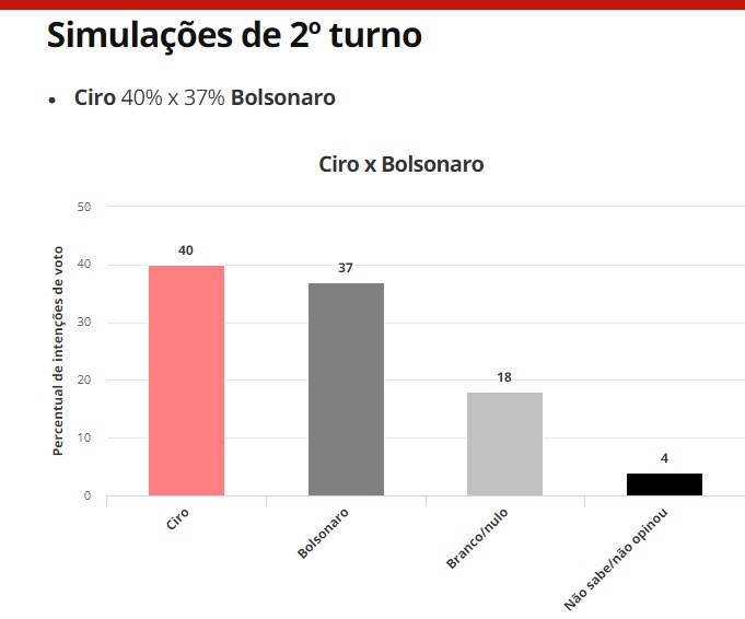 Ciro 40% x 37% Bolsonaro