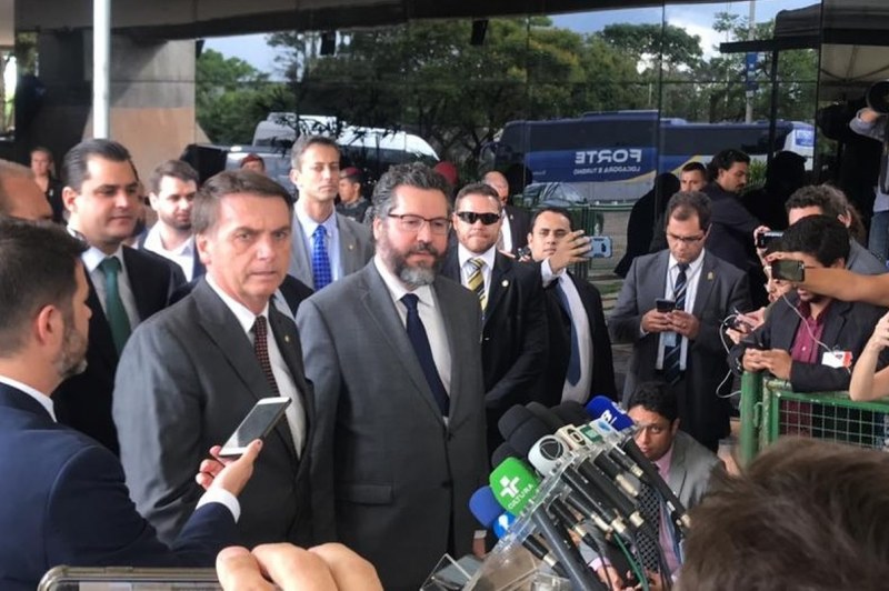 Ao lado de Bolsonaro, Enersto Araújo disse que à frente do Itamaraty fará uma política "efetiva em função do interesse nacional", tornando o Brasil um país "atuante", "próspero" e "feliz".