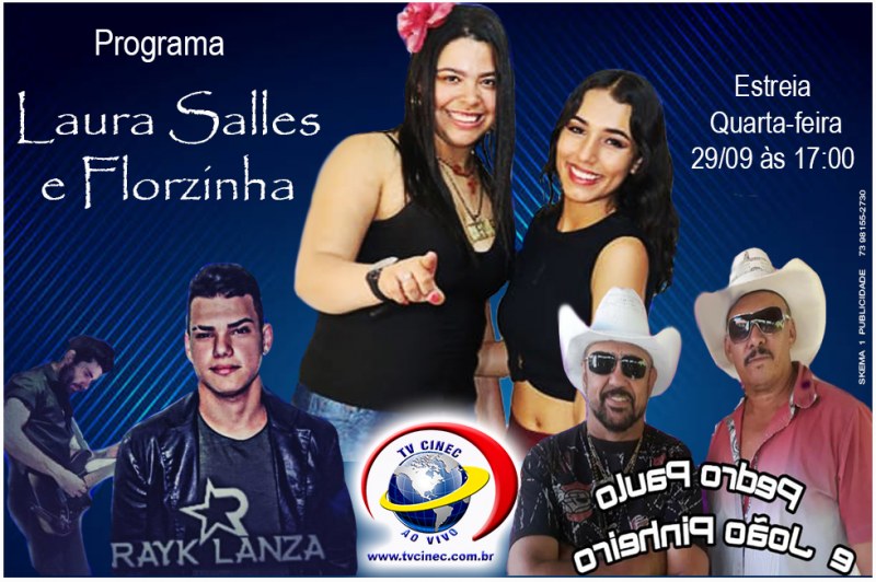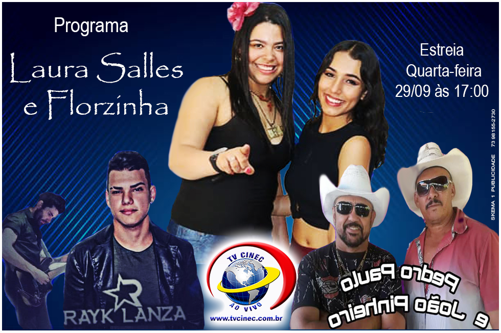 Quatro anos após se mudar para São Paulo, a jovem e talentosa cantora portosegurense Laura Salles irá estrear seu primeiro programa de TV, Laura Salles e Florzinha" na TV Sinec em São Paulo. Laura Salles tem se destacado nas redes Sociais e principalmente em programas de TV na Capital Paulista, dentre eles; Programa do Ratinho e Raul Gil.