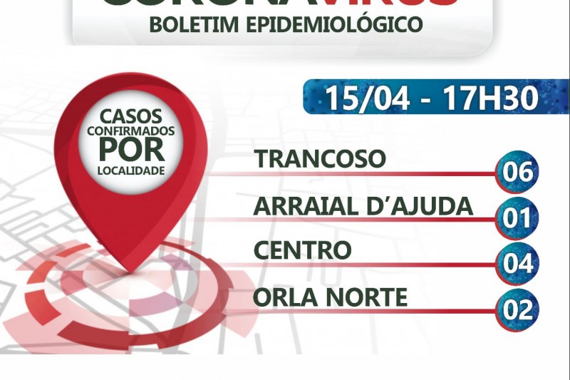A Prefeitura de Porto Seguro, em ação integrada a Secretaria de Saúde, emite oficialmente nesta quarta-feira -feira, 15/04, às 17h30, ⏰ Boletim Epidemiológico atualizado sobre os casos confirmados, notificados, descartados, aguardando resultados e em monitoramento, com o objetivo de manter informada a população sobre os casos de Coronavírus.