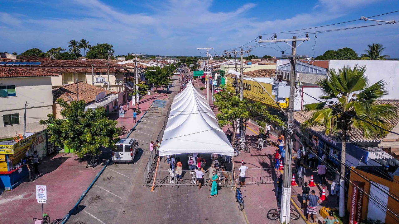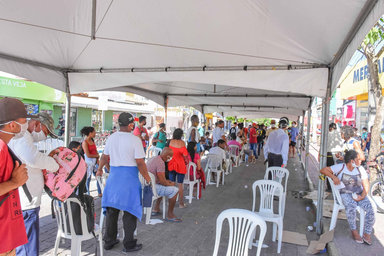 Na lateral da pista da Avenida Getúlio Vargas foram montadas tendas de proteção e suporte separador de público. Foram feitas marcações para organizar filas com delimitação dos espaços seguindo espaçamento recomendado pela OMS que define distância entre as vagas, bem como, foram disponibilizadas cadeiras para que as pessoas possam aguardar sentadas e na sombra.