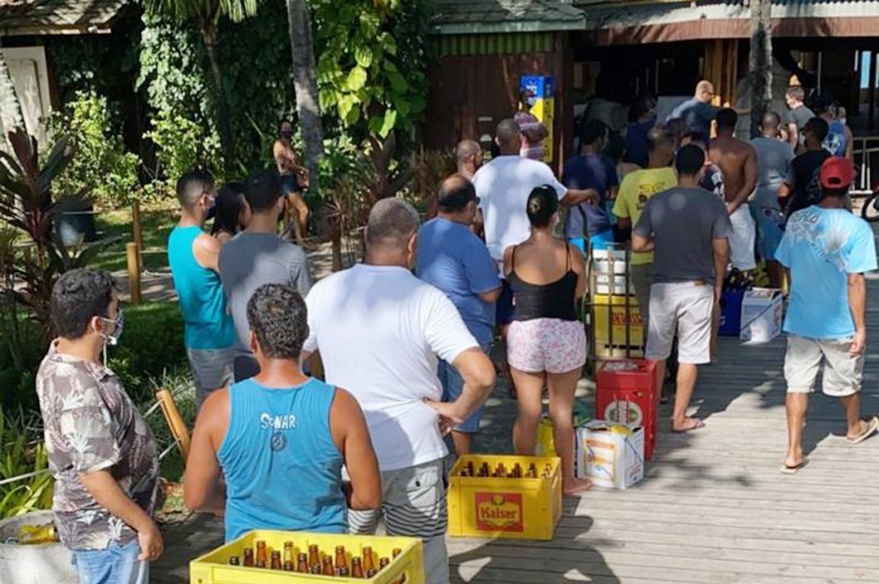 Uma ação no mínimo impensável para não dizer IRRESPONSÁVEL, promovida pela Cabana Axé Moi na manhã desta sexta-feira 15/05, causou grande aglomeração de pessoas por conta de uma promoção de venda de cerveja em garrafa. Localizada na BR-367 na Orla Norte de Porto Seguro, a ação atraiu centenas de pessoas, gerando desta forma um foco de possível Contágio do Covid-19.
