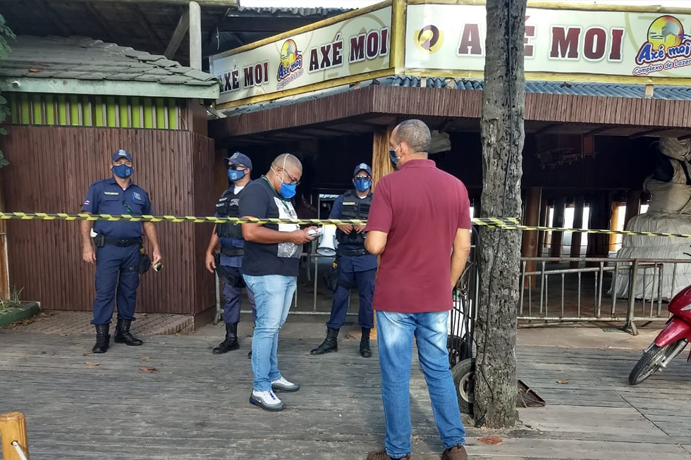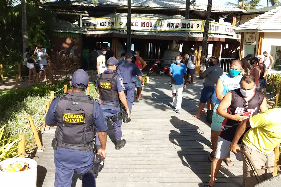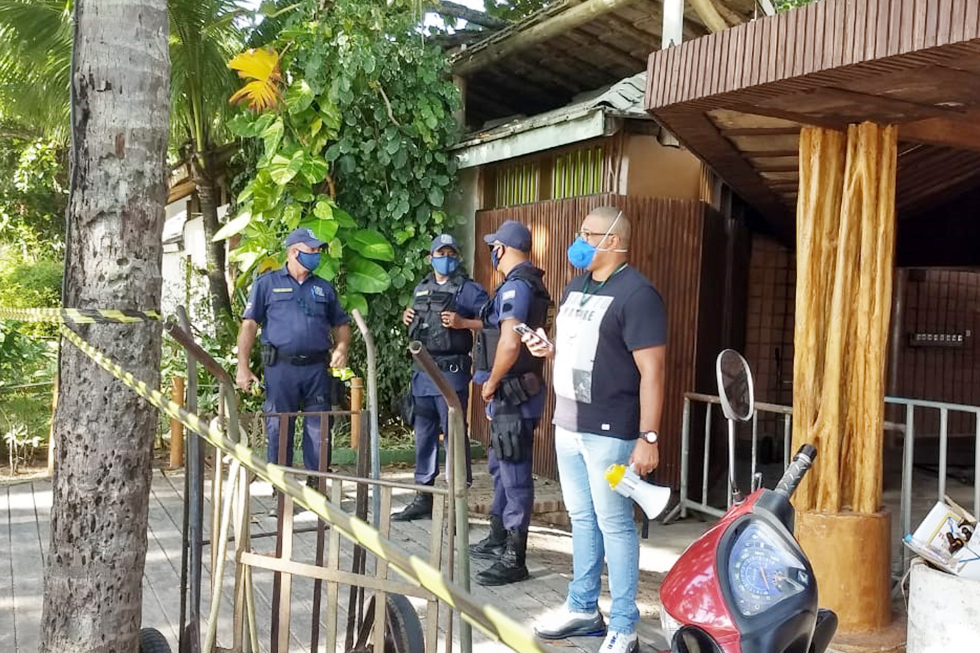 O Secretário Sargento Fabio Costa e o Superintendente da pasta, Josedam Nicácio participaram da ação que cominou na interdição da venda de cerveja e consequentemente com o fim da aglomeração.