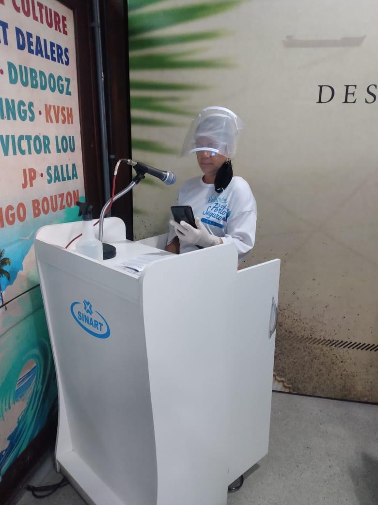 A prefeitura de Porto Seguro, através da SECTUR - Secretaria Municipal de Turismo, está atuando neste sábado 19/97, junto à Diretoria de Vigilância Sanitária, na realização de barreira de segurança em saúde no desembarque doméstico do aeroporto, com base nos protocolos sanitários do Programa Porto Mais Seguro, instituído pela Prefeitura de Porto Seguro e que estabelece normas de segurança para retomada da atividade sócio-econômica do município. A operação teve a cooperação da Sinart, Anvisa e Polícia Militar.