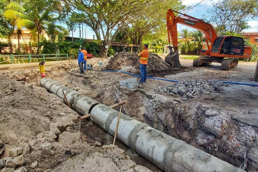 A primeira etapa desta intervenção contempla aproximadamente 400 metros de drenagem entra a Praça dos Pataxós e a Rua Pau Brasil, chegando até a altura da Rua do Telégrafo. A região apresenta constantes pontos de alagamentos, devido à diferença de níveis do terreno.