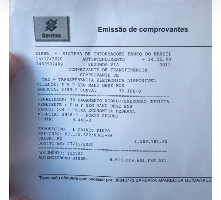 O pagamento, revelado pela equipe de transição do governo Jânio Natal, refere-se, de acordo dados constantes no recibo extraído do Sistema de Informações do Serviço de Autoatendimento do Banco do Brasil, a um acordo de Execução Judicial.