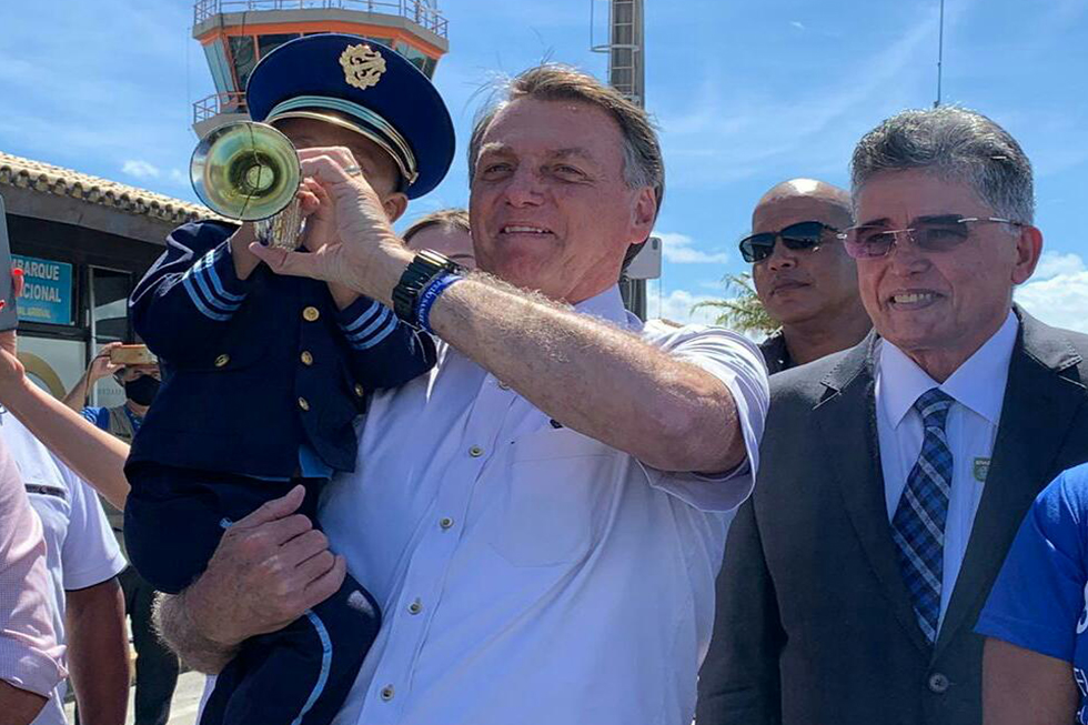 De volta ao Aeroporto Internacional de Porto Seguro, em área reservada, o presidente participou de solenidade de assinatura de Medidas Provisórias de apoio ao Setor Produtivo acompanhado pelo Ministro do desenvolvimento Regional, Rogério Marinho, deputados, do prefeito Jânio Natal, prefeitos da região, Ariana Prates (presidente da Câmara Municipal) e empresários.