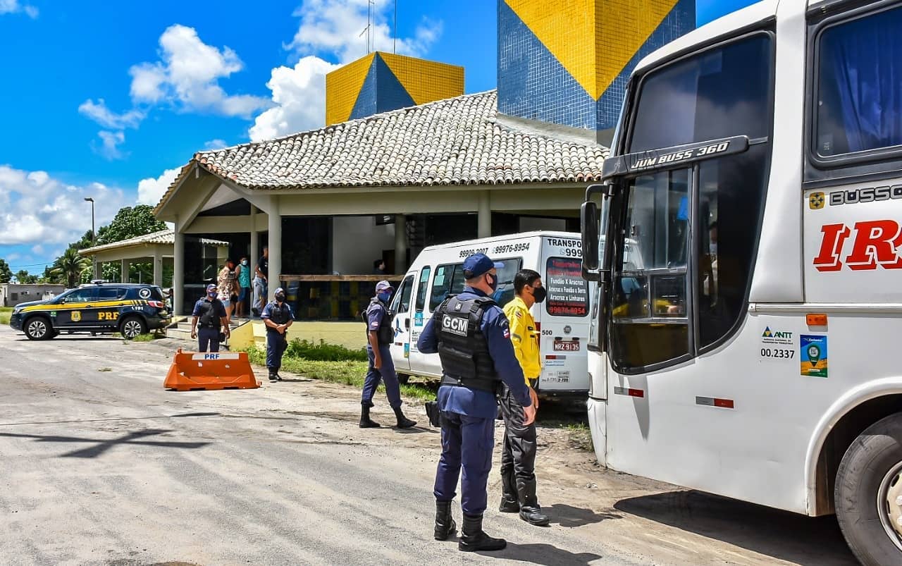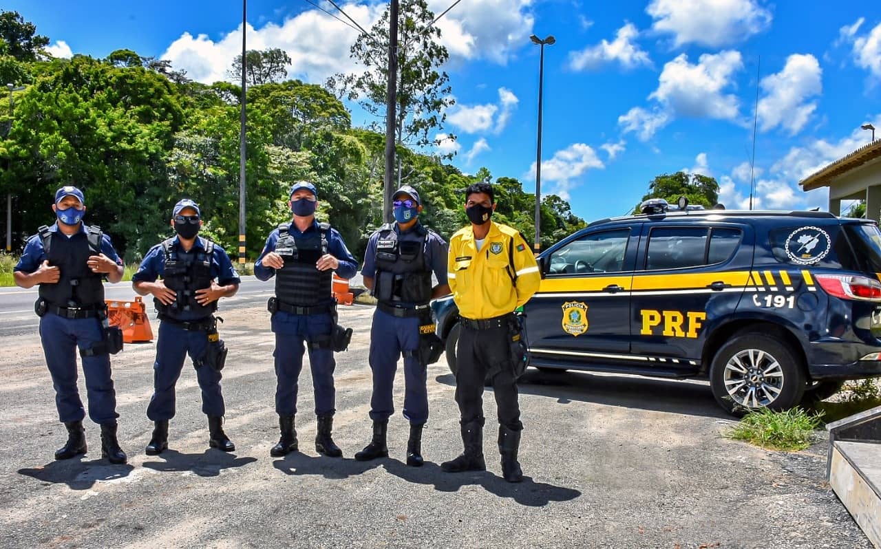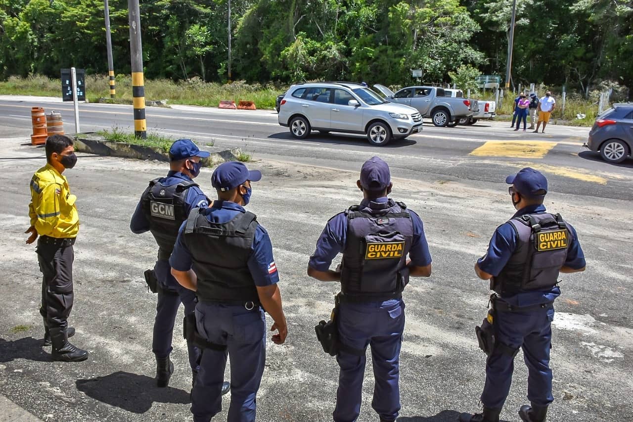 Agentes da Guarda Civil Municipal e agentes de Trânsito da Prefeitura de Porto Seguro deram apoio à Operação Carnaval da Polícia Rodoviária Federal, na manhã desta sexta-feira, 12/2, na BR-376, no antigo posto da PRF e onde atualmente funciona o portal de entrada do município para verificação dos ônibus turísticos.