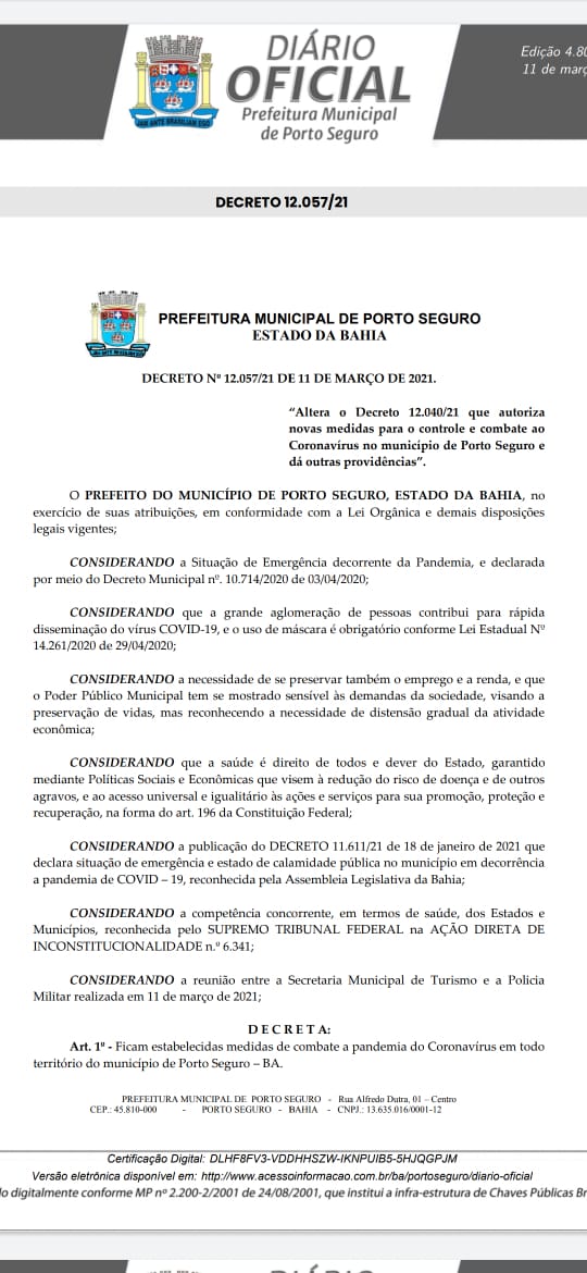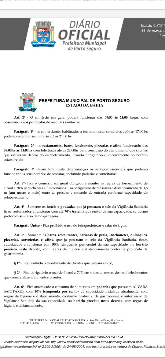 Buscando preservar a economia e a saúde da população, foi criado o selo “Porto Seguro Responsável”, que atende às medidas de segurança sanitária para a reabertura gradual e sustentada do turismo, do comércio e de atividades correlatas, em nosso município.