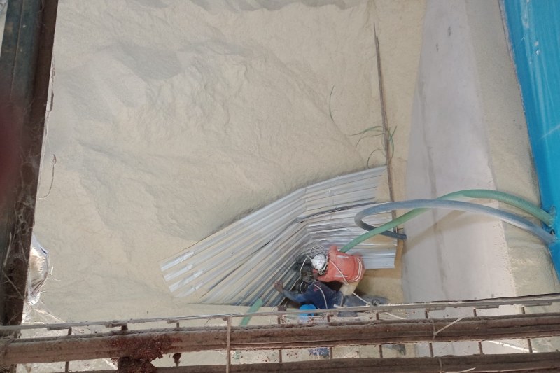 Para o resgate do corpo da vítima, a guarnição retirou toneladas de farelo do local. De acordo com os trabalhadores locais, o rapaz estava fazendo a manutenção do depósito que armazenava em torno de 400 toneladas de farelo, quando aconteceu o acidente.