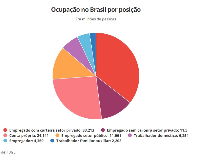 Os dados mostram que o trabalho por conta própria também bateu o recorde da série histórica do IBGE, iniciada em 2012: no trimestre encerrado em junho, 24,1 milhões de pessoas estavam nessa situação.