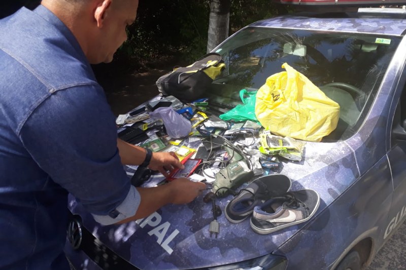Entre os itens havia carteiras, documentos, celulares, tênis, mochilas, que estavam com um homem morador naquele local e que efetuava assaltos na região. A Guarda Municipal deu voz de prisão e acionou a Policia Militar, que levou o suspeito preso para a Delegacia de Polícia Civil.