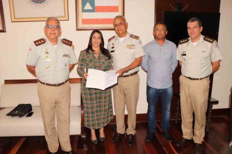 A prefeita de Porto Seguro, Cláudia Oliveira, esteve em Salvador na terça-feira, 8/10, para assinatura do termo de cooperação técnica firmado entre a Prefeitura de Porto Seguro e a Polícia Militar da Bahia, através de seu comandante geral, coronel Anselmo Alves Brandão, para a implementação da gestão compartilhada da Escola Municipal do Cambolo.