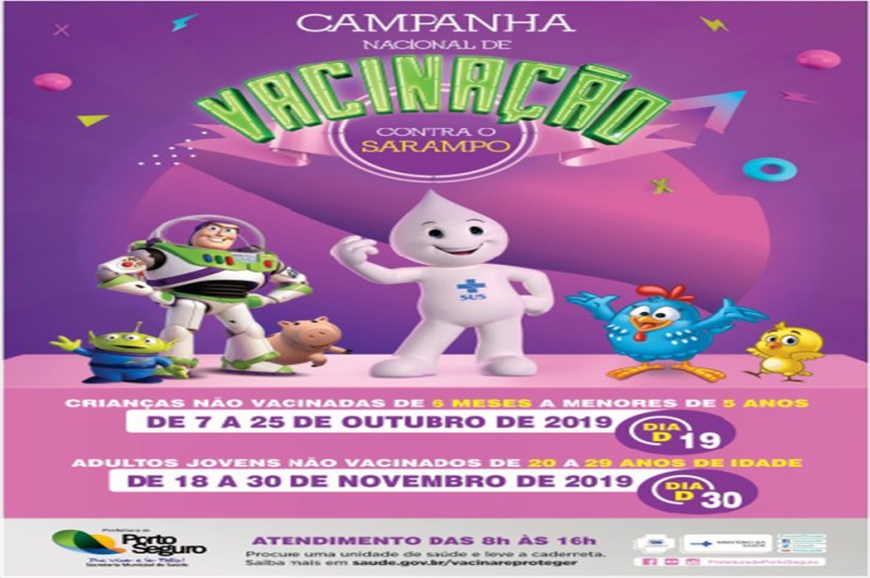 No sábado, 19/10, a Secretaria de Saúde de Porto Seguro realizará o Dia D da Campanha de Vacinação contra o Sarampo em todas as unidades de saúde. A programação será realizada das 8h às 16h. Cerca de 284 profissionais, das mais diversas áreas, estão envolvidos para atender a população durante o esquema especial.