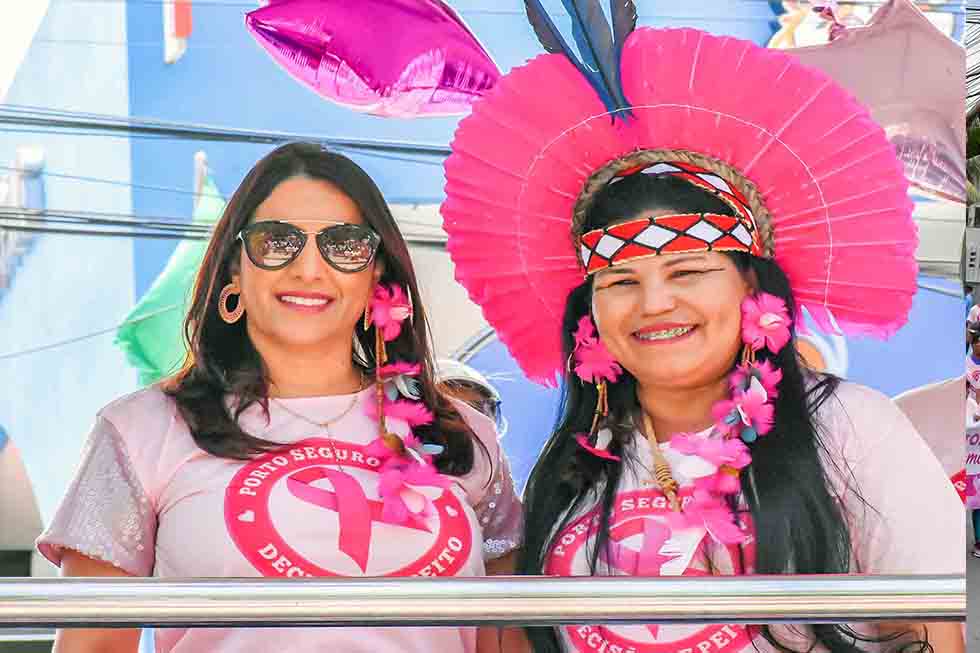 Vestidos com a blusa alusiva a Campanha, "Uma atitude de peito", a mobilização pela vida no combate ao câncer de mama, liderada pela prefeita Cláudia Oliveira, em companhia do secretário de saúde Kerrys Ruas, reuniu representantes das Secretarias que integram a Prefeitura Municipal, tendo a adesão da população, empresariado local, membros do legislativo e demais entidades sociais, sobre a necessidade de reforçar a importância das ações preventivas, diagnóstico precoce e o tratamento oportuno do câncer de mama e colo do útero ofertado pelo SUS de Porto Seguro.