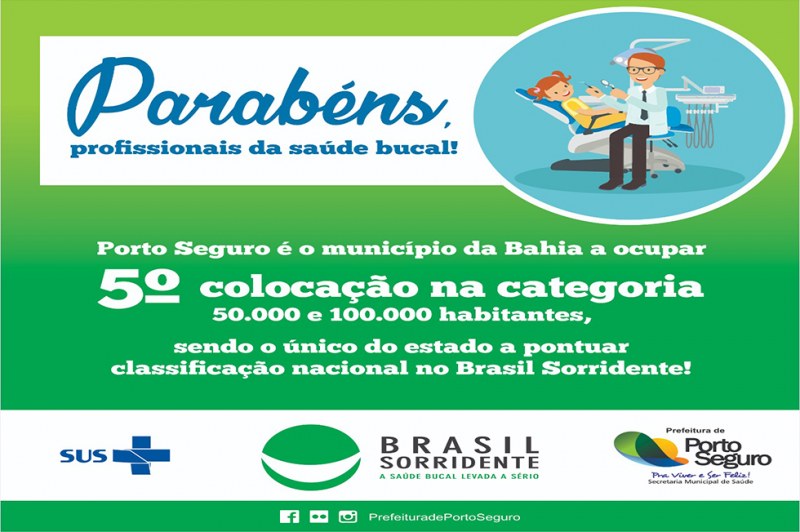O município de Porto Seguro teve posição de destaque na classificação nacional do ranking Brasil Sorridente, conforme portaria do Conselho Federal de Odontologia (CFO) divulgada no último dia 14/10, que premiou as cidades que mais investiram em políticas públicas na área de saúde bucal.