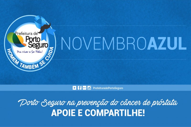 Após o mês de outubro dedicado as ações de saúde da mulher, com programação exitosa, resultado das atividades desenvolvidas no Porto Seguro Rosa no combate ao câncer de mama, a Prefeitura de Porto Seguro, em atuação integrada a Secretaria de Saúde, lançará oficialmente no dia 4 de novembro a 6º edição do Novembro Azul, em dose dupla, voltado à população masculina, com a finalidade de associar a prevenção e diagnóstico precoce do câncer de próstata e o combate ao diabetes mellitus. A cerimônia será realizada na Câmara de Vereadores, às 14h.