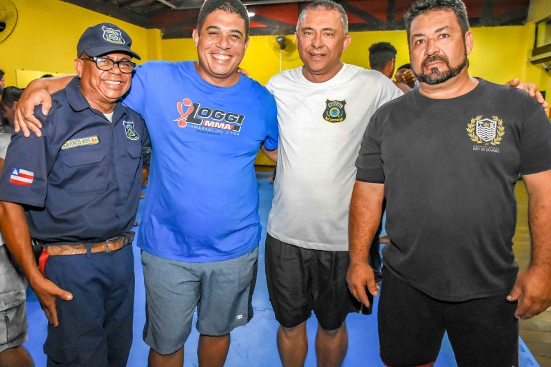 O secretário de Relações Institucionais, Maurício Pedrosa, acompanhado do diretor da Guarda Civil, Ionaldo Sansão, superintendente de Trânsito, Paulo Souto e coordenador de Artes Marciais, Flávio Porto, recepcionou o mestre Sérgio Malibu e participou da entrega dos certificados.