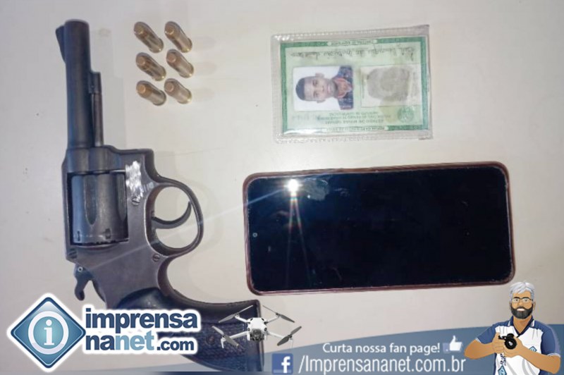 Durante a abordagem, foi encontrado em sua cintura um revólver calibre .38, municiado com seis cartuchos intactos. Diante dos fatos, foi dada voz de prisão ao suspeito, que foi conduzido e apresentado à autoridade competente no plantão da Polícia Civil, em Teixeira de Freitas, para adoção das medidas cabíveis.