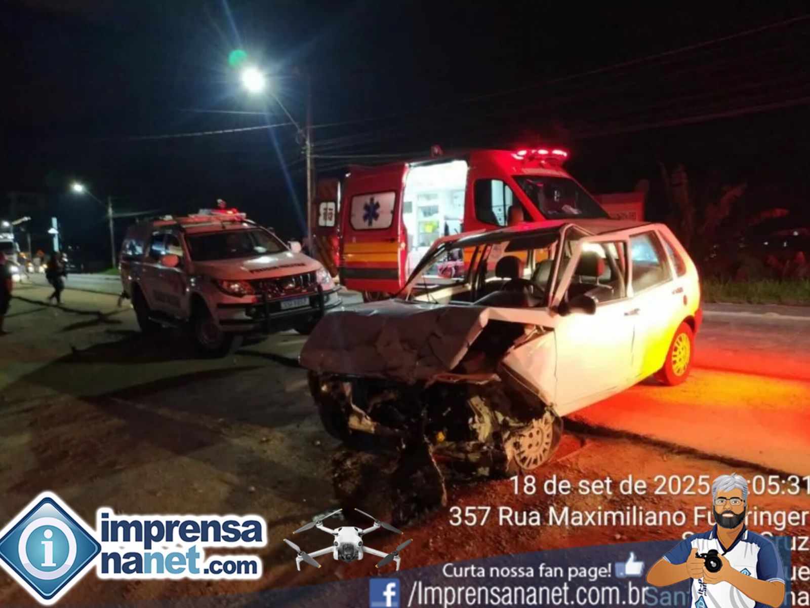 A colisão envolveu um Fiat Uno vermelho com placas de Guabiruba, conduzido por um homem de 67 anos; um Fiat Uno Mille branco com placas de Brusque, dirigido por um homem de 39 anos; e um Fox branco, também de Brusque, conduzido por um jovem de 25 anos.