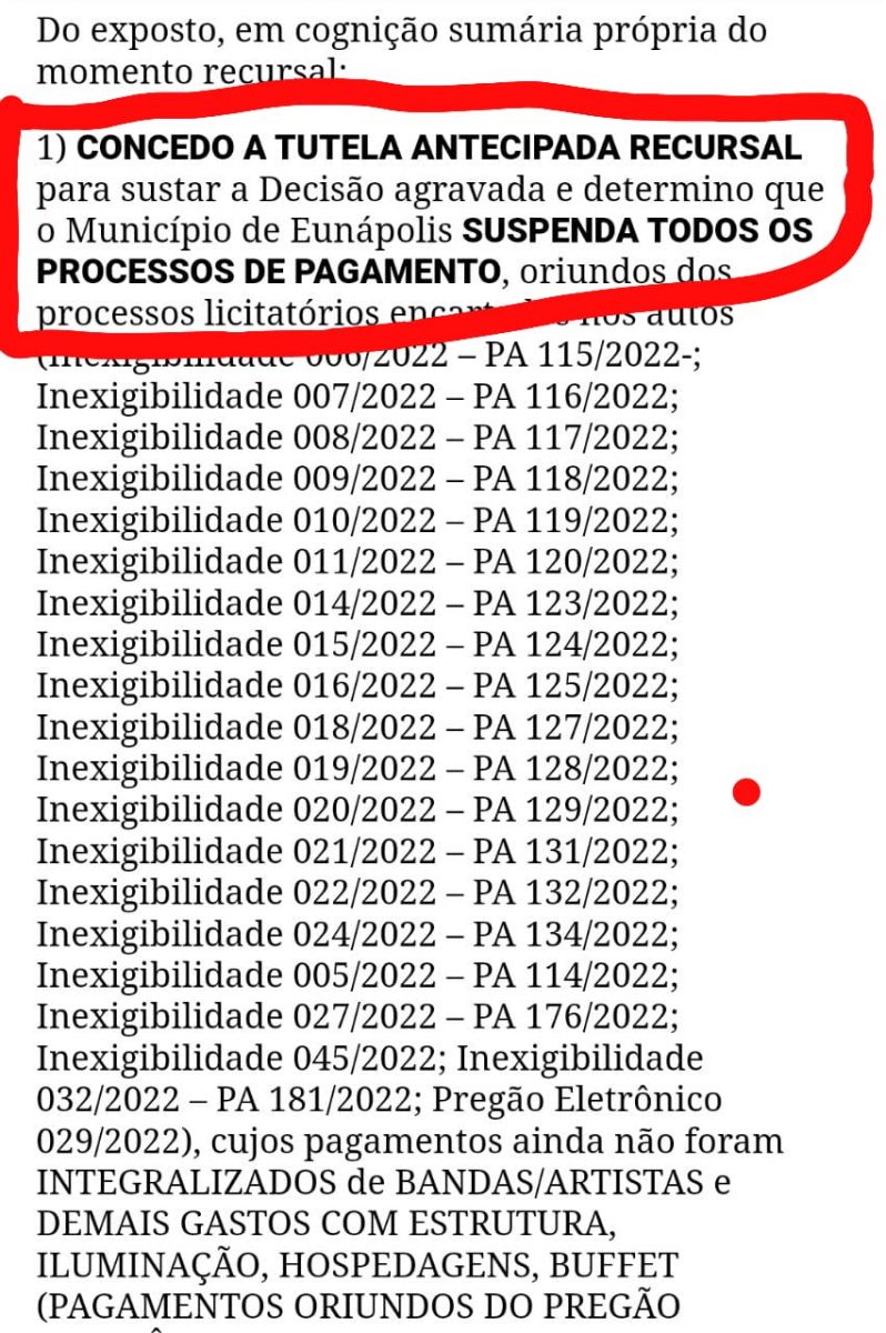 Uma decisão liminar, publicada na noite desta terça-feira, 28, pelo Tribunal de Justiça da Bahia, com base na Lei de Responsabilidade Fiscal, cancela os pagamentos destinados aos festejos da festa que é tradicional na cidade. A decisão ainda cabe recurso.