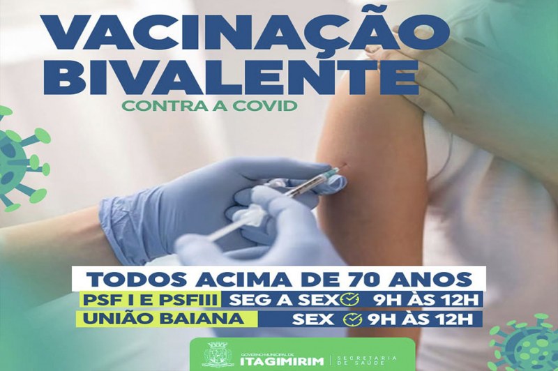 A prefeitura de Itagimirim, através da Secretaria Municipal de Saúde, inicia nesta sexta-feira 03/03, campanha de vacinação contra a Covid-19, com vacinas "BIVALETE". Nesse primeiro momento, serão vacinadas pessoas acima de 70 anos, posteriormente, a imunização será estendida também a outros públicos-alvo.