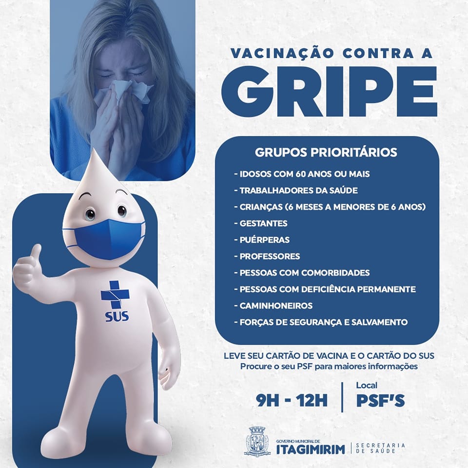 A Secretaria Municipal de Saúde de Itagimirim intensifica ações de vacinação contra a Gripe Influenza durante todo o mês de maio. O imunizante já está disponível para vários públicos, tanto na sede, quanto no Distrito de União Baiana.