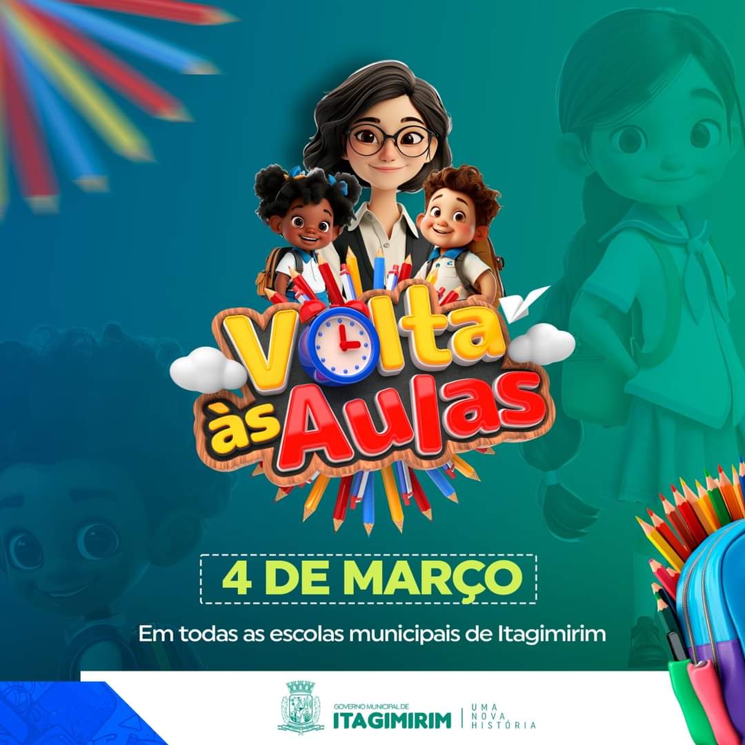 VOLTA ÀS AULAS - A prefeitura de Itagimirim, através da Secretaria Municipal de Educação, informa que todas as escolas da 'Rede Pública Municipal de Ensino' já estão prontas para o início das aula do ano letivo de 2024. Então, você papai, você mamãe, já podem arrumar o material escolar dos seus filhos, o futuro está ao alcance de todos, com o conhecimento, esta jornada se torna muito mais fácil.