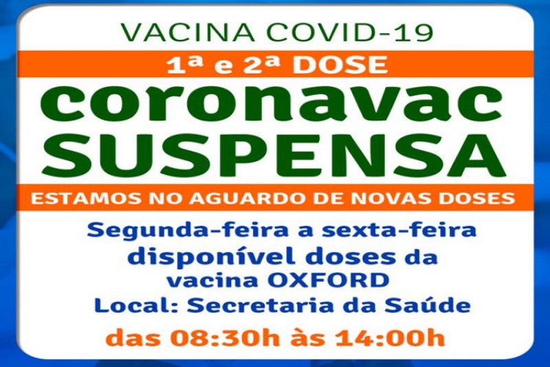 Embora a solução do problema não dependa da Prefeitura, estamos envidando todos os esforços, para que a situação seja resolvida o mais cedo possível. Com fé em Deus, logo tudo estará regularizado e, em breve, teremos imunizado toda a nossa gente.