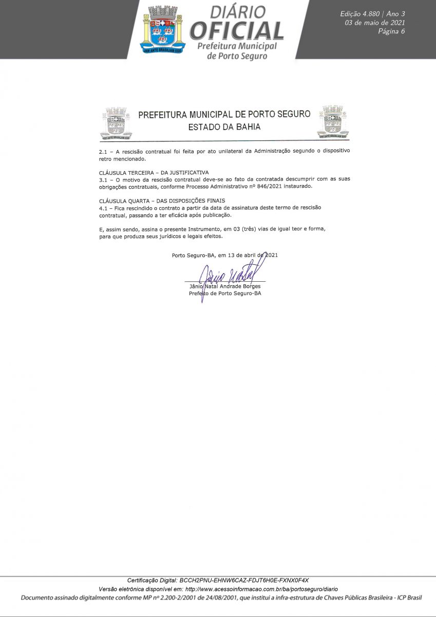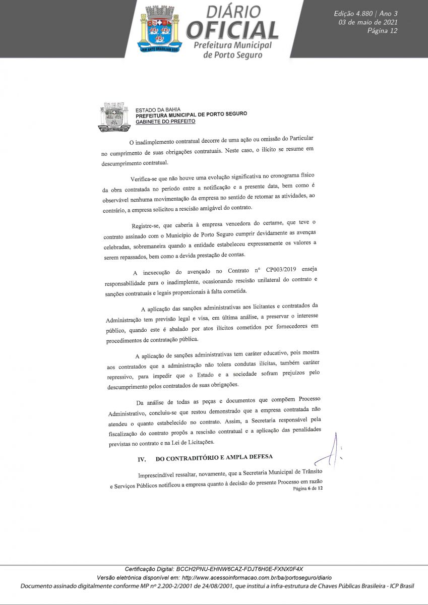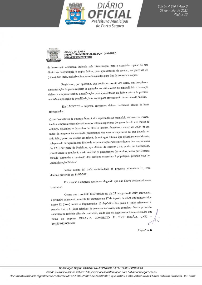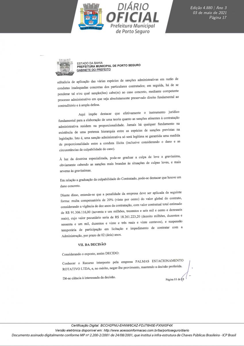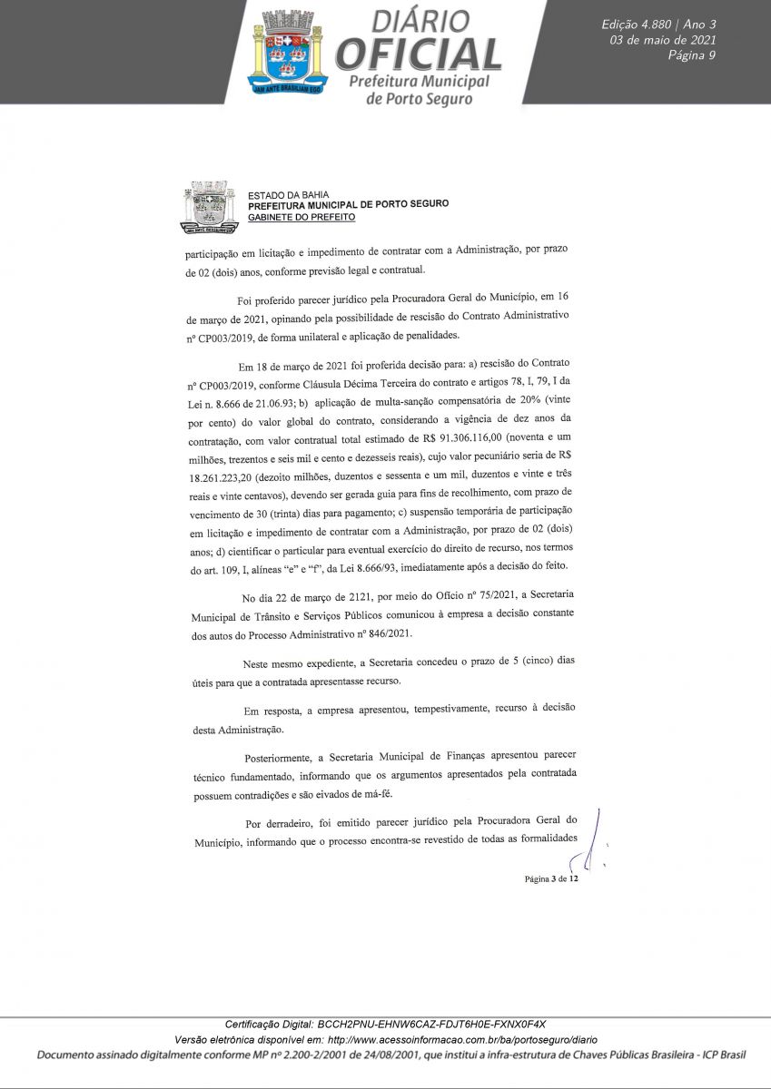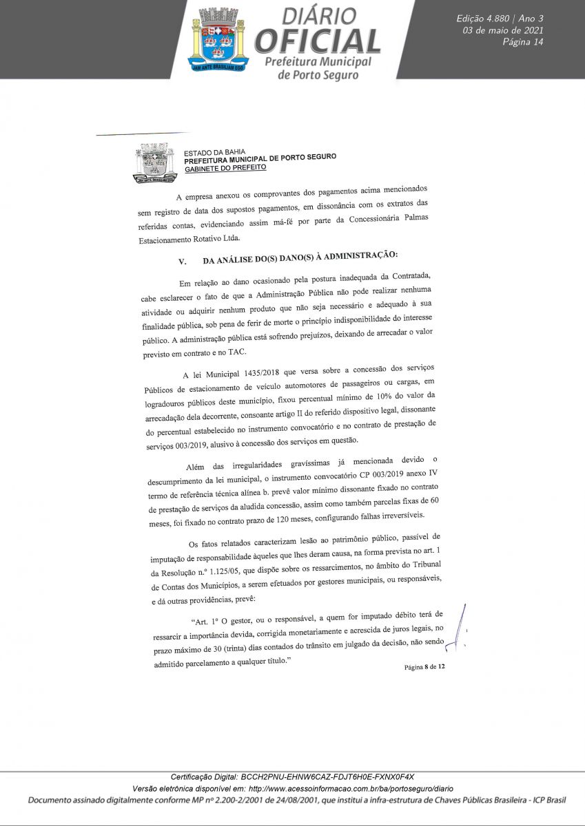 Decreto 12.180/21 assinado pelo prefeito Jânio Natal, nesta segunda-feira 03/05, rescinde definitivamente o Contrato de Concessão CP N° 003/2019 em nome da empresa Palmas Estacionamento Rotativo LTDA. A decisão foi tomada após a conclusão do Processo Administrativo N° 0846/2021, instaurado para apurar irregularidades na concessão, operação e transparência do serviço pra contratado.