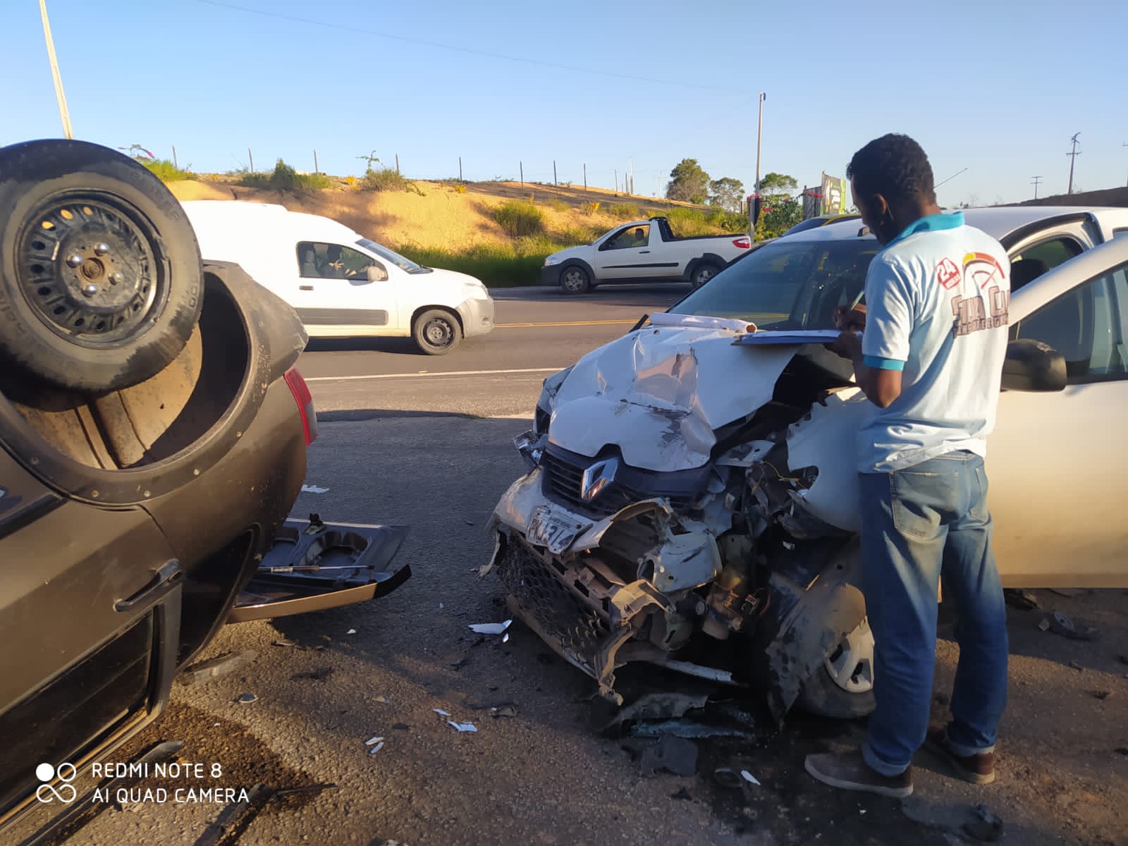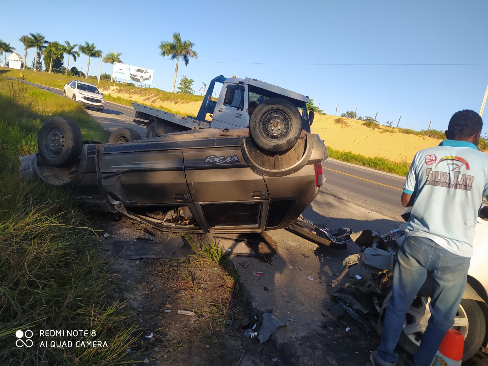 Informações dão conta que no Renault Sandero estavam, Oliver Abade, filho do ex-prefeito Gilberto Abade, um homem de nome Jonhantam e outra pessoa ainda não identificada.