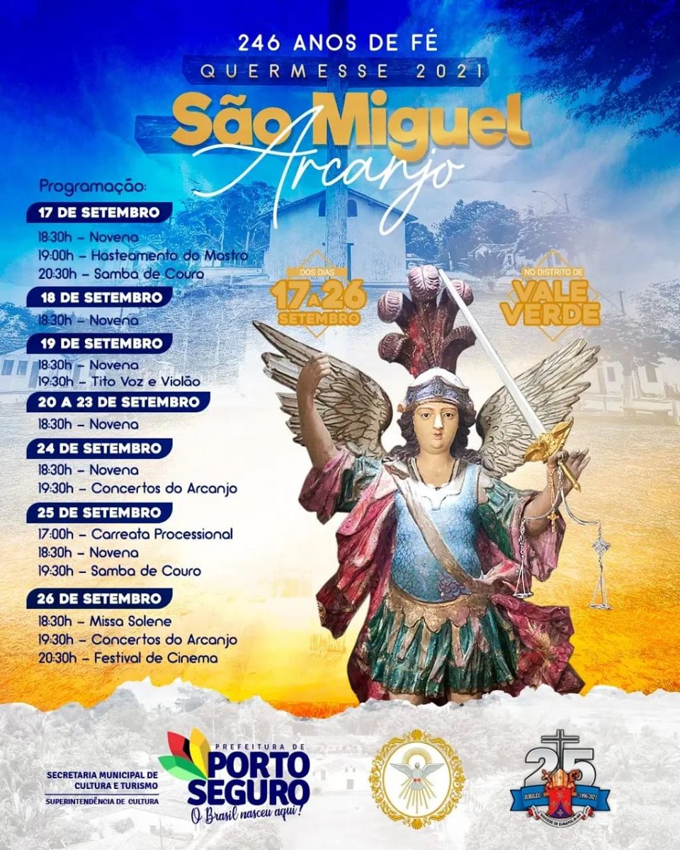 Com apoio da prefeitura de Porto Seguro, a Paróquia do Divino Espírito Santo e comunidade do Distrito de Vale Verde, iniciou os festejos em comemoração ao Padroeiro São Miguel Arcanjo. Carinhosamente chamada de 'Pequena Joia do Brasil', o distrito conta com o belo e charmoso "QUADRADINHO", centro histórico, palco das comemorações que segue até 26/09.