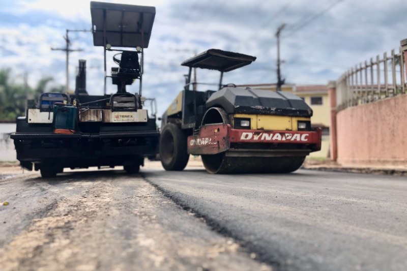 Nesta semana, as máquinas e profissionais concentram-se no asfaltamento em massa CBUQ na Rua Pau Brasil, Rua dos Jasmins, Rua dos Cacaueiros e acesso à Rua do Telégrafo.