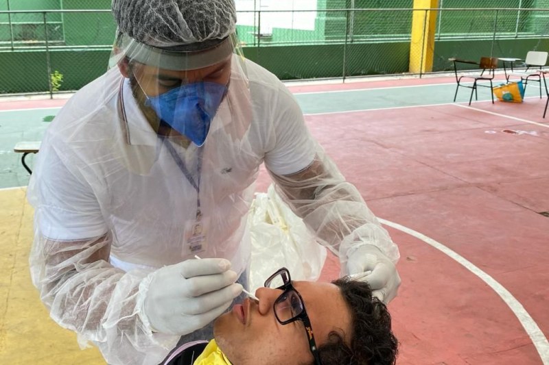 Com o intuito de identificar, monitorar e isolar casos da Covid-19 nas escolas, a Secretaria da Saúde do Estado da Bahia (Sesab) em parceria com as Secretarias da Saúde e Educação de Porto Seguro, iniciou a testagem dos funcionários e estudantes com idade superior a 12 anos da rede pública municipal e estadual, desde que estejam assintomáticos e participando das atividades presenciais.