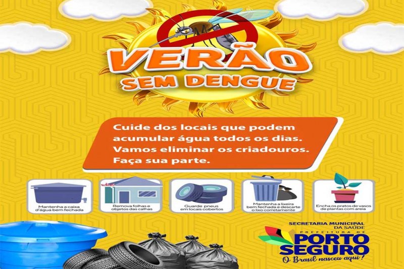 Com a chegada do período de verão, a prefeitura de Porto Seguro, através da Secretaria Municipal de Saúde inicia período de alerta e iniciam campanha de informação com destaque nas ações são necessárias para combater a transmissão da dengue. A equipe de Agentes de Endemias da Secretaria da Saúde de Porto Seguro está de prontidão no combate ao mosquito Aedes Aegipty o ano inteiro.