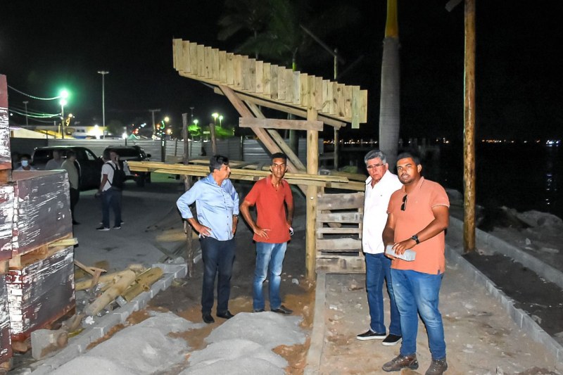 Aproveitando a trégua das chuvas, o prefeito de Porto Seguro, Jânio Natal, esteve na Passarela do Descobrimento, na noite desta terça-feira, 14, para mais uma visita técnica aos trabalhos das obras de revitalização completa do espaço. Preocupado com o andamento das atividades, por conta das fortes chuvas que assolaram o município nos últimos dias, o prefeito determinou celeridade e compromisso.