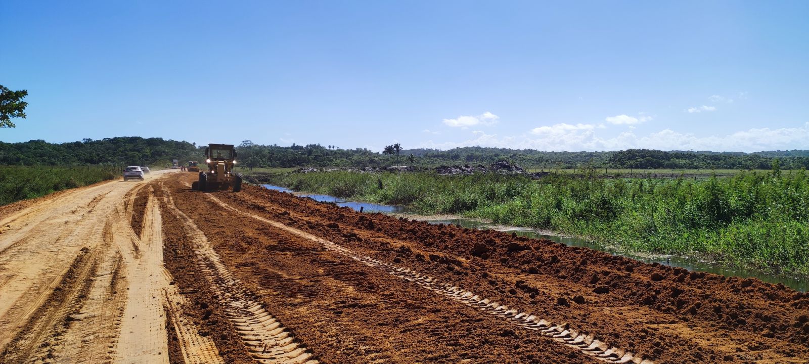 No local, são pelo menos 12 máquinas e mais de 10 caminhões basculantes operando simultaneamente na construção das galerias de escoamento e no aumento de nível da estrada. Além disso, o gestor recomendou melhorias na estrutura da ponte. “O que estamos fazendo é uma estrada nova”, finalizou Jânio Natal.