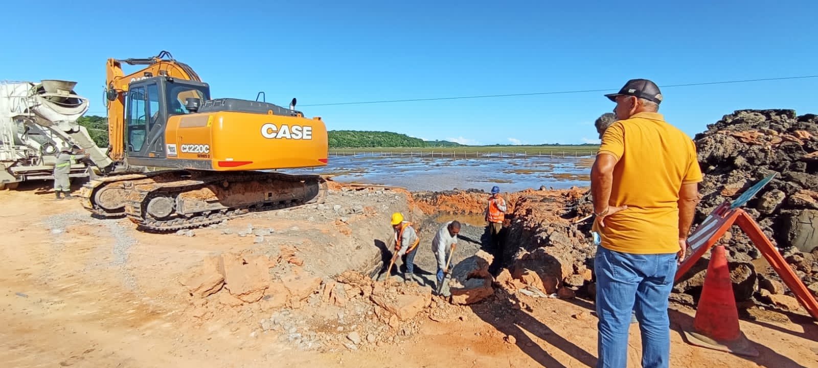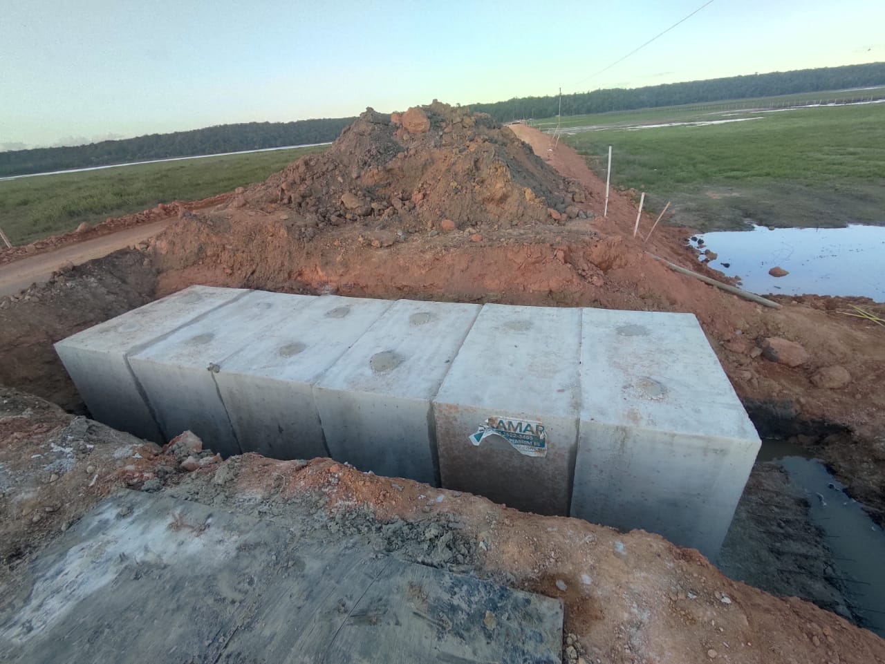 O serviço é contínuo e acelerado para que as obras de reconstrução da estrada no Vale dos Búfalos fiquem prontas o quantos antes. Homens e máquinas trabalham na concretagem para implantação das galerias de 1,5 metros de altura, que evitarão o acúmulo de água e garantirão o escoamento adequado.