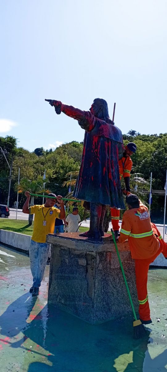 Após o vandalismo, a prefeitura de Porto Seguro, através da Secretaria Municipal de Serviços Públicos entrou em sena para revitalizar o monumento depedrado. O secretário da pasta, Luciano Alves foi pessoalmente até o local juntamente com um equipe para fazer a limpeza da Estátua do Cabral.