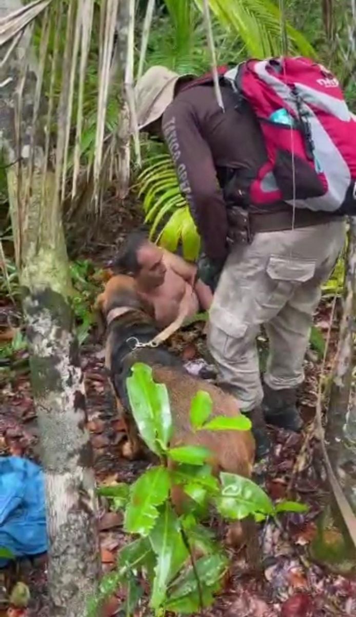 “Decidimos reiniciar as buscas daquele ponto com Surah, até que ela apontou o local onde o homem estava. O encontramos deitado, bastante desidratado e assustado, entre algumas folhas”, explicou Costa.
