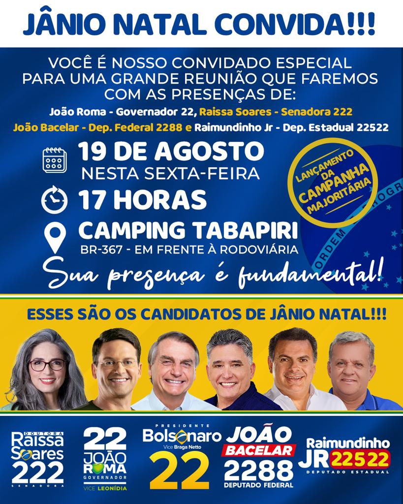 Com o início oficial da corrida eleitoral para o pleito 2022, a maioria dos candidatos já se movimentam em busca dos votos. O candidato a governador da Bahia, João Roma (PL), realizará, na sexta-feira, 19 de agosto, o lançamento oficial da sua candidatura em uma grande reunião que será conduzida pelo prefeito da cidade, Jânio Natal.