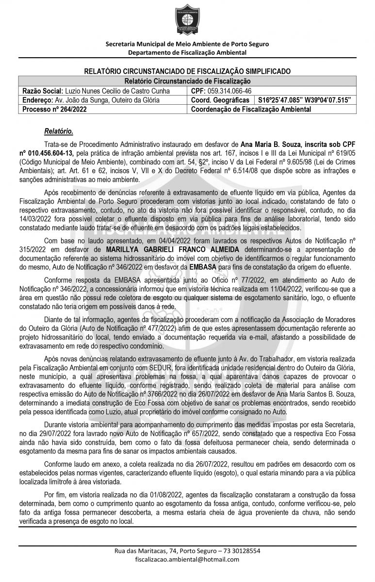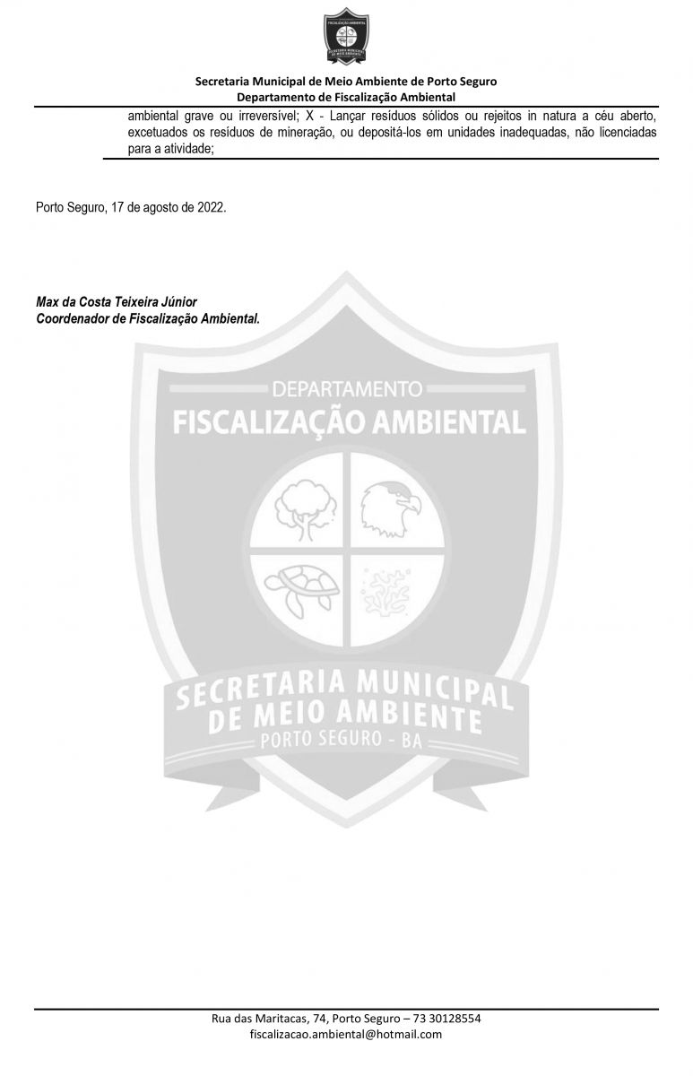 Durante a inspeção, foi identificado que todos os dejetos descartados de forma criminosa, saiam daquele condomínio, o qual, apesar de ser de alto padrão, não existe rede de esgoto e sim fossas sépticas. Na operação, agentes da Secretaria Municipal de meio Ambiente, lavrou um auto de infração e multa em desfavor a um morador do condomínio. Veja abaixo, decisão na íntegra.