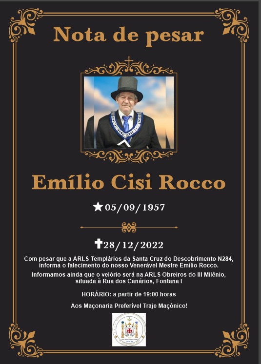 Fim de ano de tristeza para a Loja Maçonica 'Templário da Santa Cruz do Descobrimento de Porto Seguro. Um grave acidente envolvendo uma caminhonete Toyota Hilux e uma carreta causou a morte do Venerário Emílio Cisi Roncco, outras duas pessoas ficaram feridas (esposa e filha da vítima).