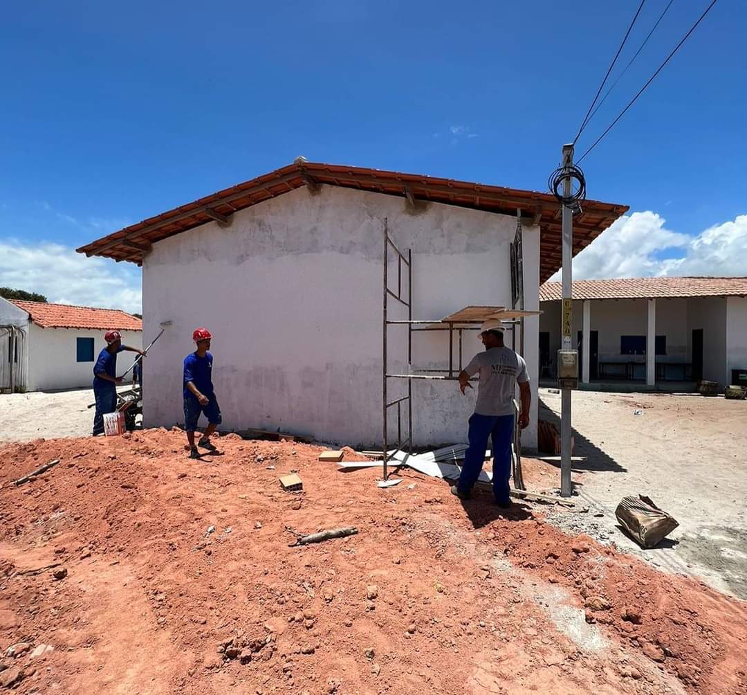No bairro Xandó, as duas novas salas de aula e a sala da diretora estão praticamente prontas e fazem parte do projeto de ampliação da escola, que também está recebendo uma manutenção geral.